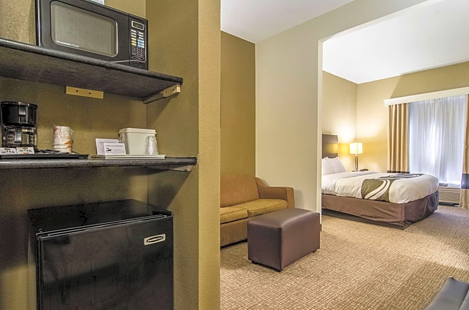 A sofa bed, flat-screen cable TV, microwave, small refrigerator, and coffee machine are provided in this suite.
